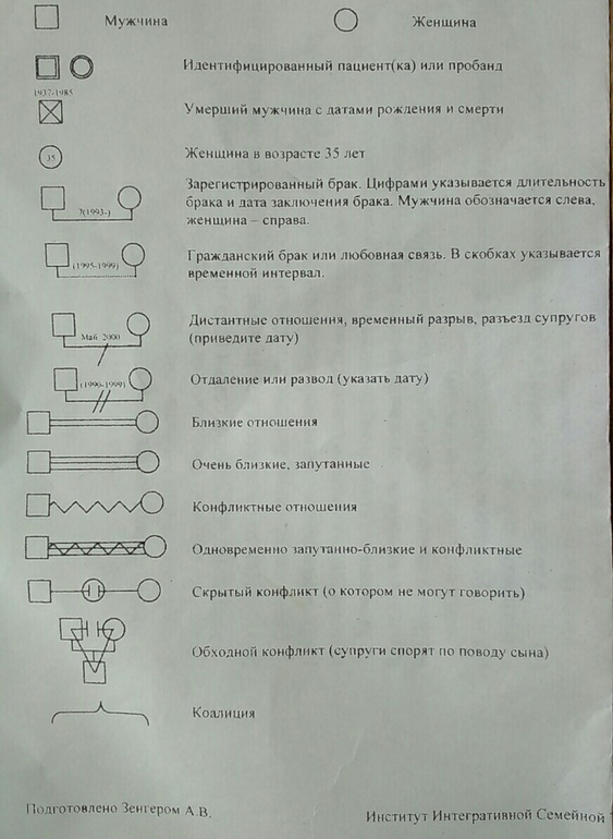 В общем, недолго думая, психолог откопировал мне бумажку и предложил составить генограмму.