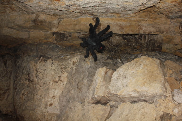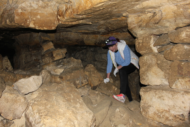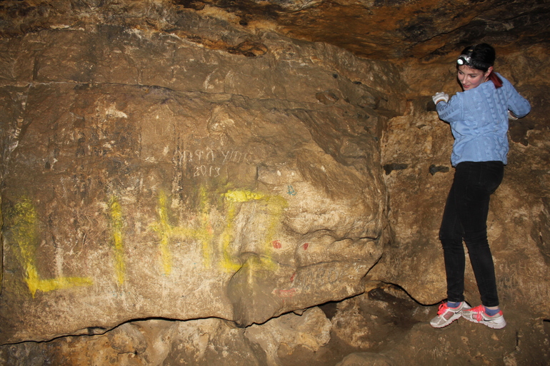 Потом отвели в пещеру, где Катя нарезвилась, играя в альпинистов