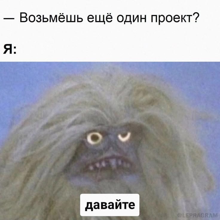 Пятничный постЧто разбавляет наши рабочие будни? ну конечно мемы. Прислать что-то смешное в "болталку" проекта или в чат с коллегой - и ты уже не такой злой после созвона с клиентом)