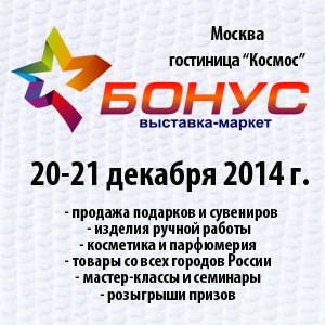 Приглашаем всех желающих принять участие в Предновогодней выставке-ярмарке "Бонус" в гостинице "Космос" 20 и 21 декабря.