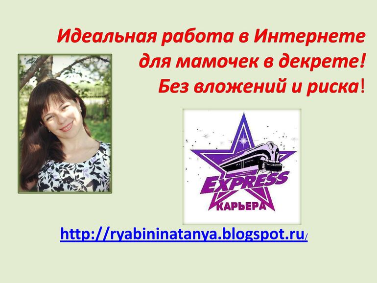 Меня зовут Татьяна, Я - молодая мама в декрете. Я нашла работу в Интернете на 2-3 часа в день и возможность стать финансово независимой. Ищу активных девушек в мою команду, желающих зарабатывать и менять свою жизнь в лучшую сторону! Денег вкладывать и продавать не нужно, нужно просто честно работать. Моя цель - показать как работает система изнутри, чтобы вы смогли оценить все возможности, которые открываются в нашей работе! Работаем вместе - деньги ваши)))