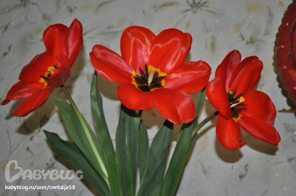 Я же поздравления от моих любимых мужчин начала принимать 7го числа (живём мы не в городе и 8го ехать за цветами не было возможности, но разве это главное?)... Муж вечером приехал из города с продуктами и пока я разбирала пакеты, сынуля зашёл на кухню и со словами "Мамааа, НЯ" протянул мне тюльпы... Как же это было трогательно