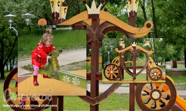 Качельки в виде крокодильчика,а горка в виде кареты) Интересно! Первый раз такие вижу.