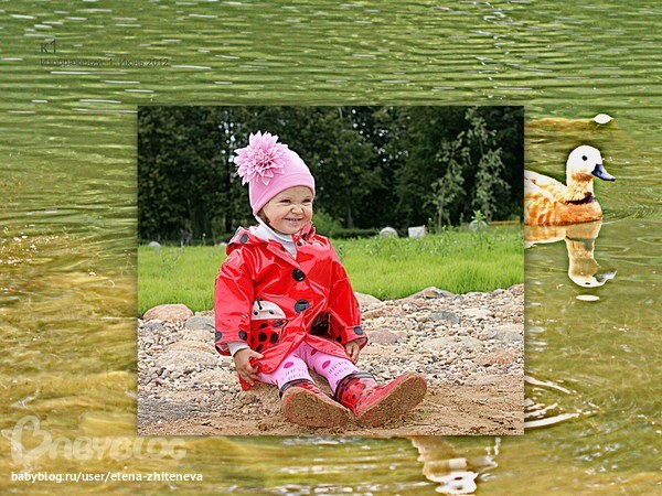 Нашему шилопопу хватило несколько минут для исследования местности, и почему-то не обнаружив ничего для себя интересного, Даша ускакала к пруду. И вот там мы осели на 1,5 часа где-то. Там же камушки и вода!