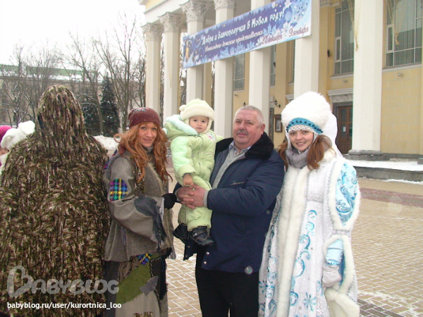 Леший, Баба Яга. Снегурочка и Владюша с дедулей (своим)