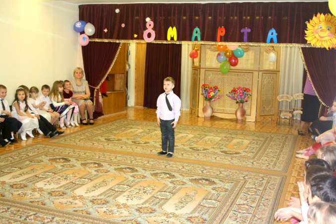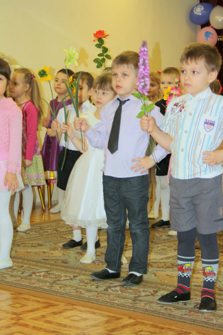 Саша...Его утренник был поистине трогательным!Детки 5-летки уже понимают многое и денлают все более старательно и осознаннее.Толпа деток с высоко поднятыми руками,а в них цветы-это поистине завораживающее зрелище.Я постоянно плачу у Саши-не могу сдержать эмоций,настолько трогает это все)