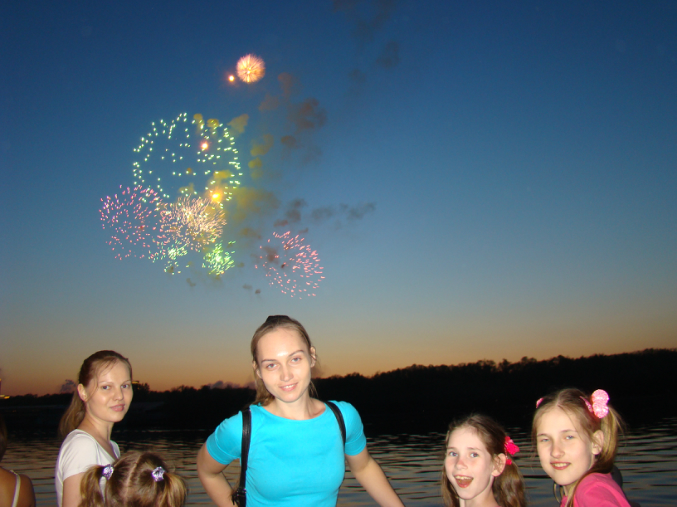 а потом салют закончился мы пошли гулять по набережной ну и на тренажерах побаловались, побегали в салки, погрызли семечки и потопали домой....