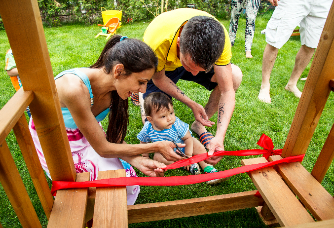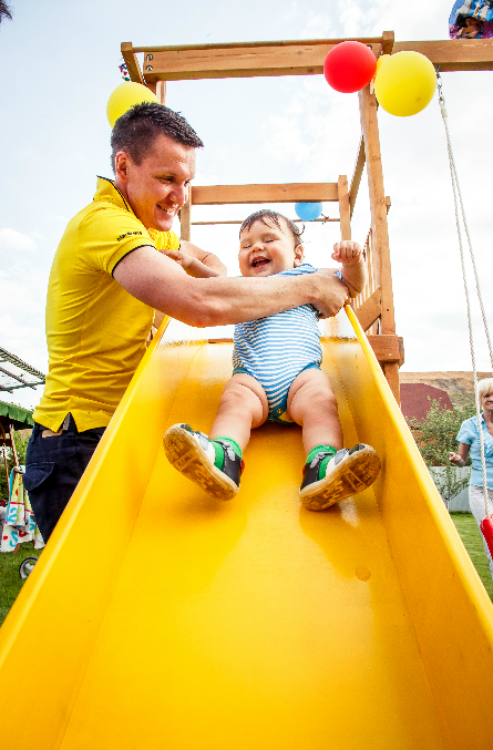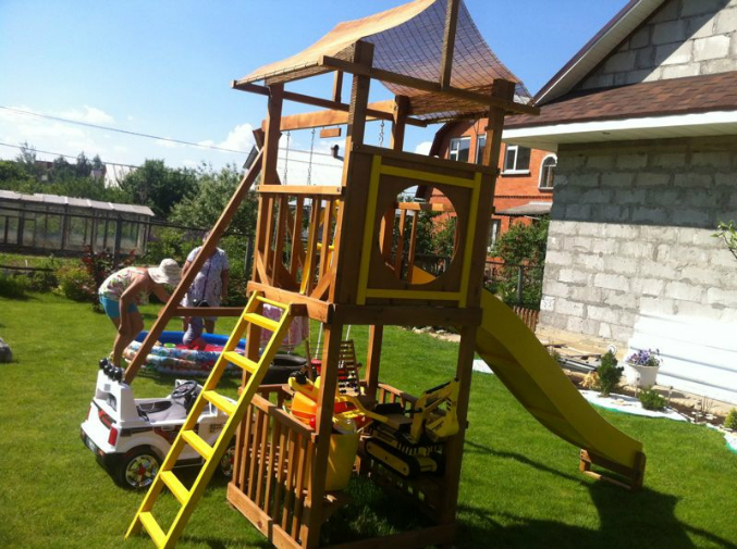 Небольшой комплекс мой папа построил своими руками для первого внука.
