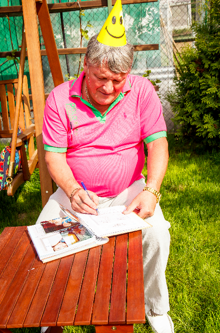 Дедушка со стороны папы пишет пожелания для Марселя в альбоме.