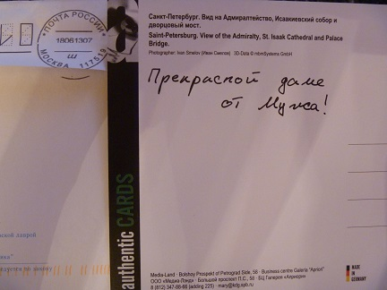 Любимые мужьяМуж сюрпризом отправил открытку, когда был в командировке. Обращаем внимание на даты и город))