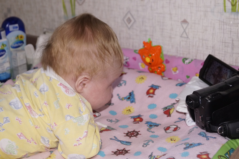 Подсунула доче камеру с видеосъёмкой её самой. Заинтересовалась не на шутку.... Забавненько)))))))