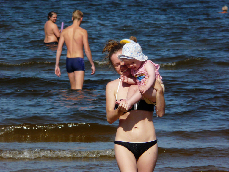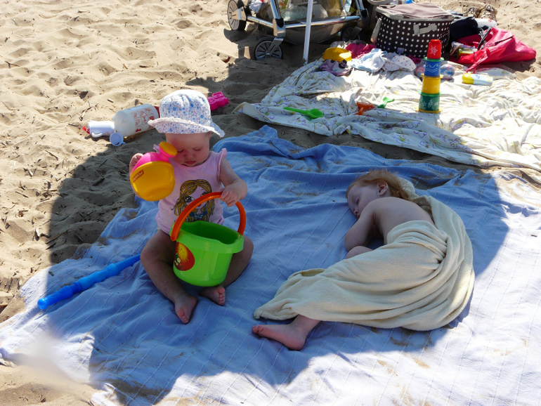 Жарень то надолго? У нас всю неделю было жарко, а в воскресенье опять похолодает. У Сашки мордашка немного загорела.