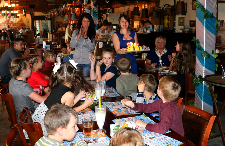 На час дня было заказано место для празднования в ресторане «Августин». Мы остановили на нем выбор (довольно скоро) по трем главным причинам: а) по воскресеньям там бесплатная детская анимация б) есть детское меню (и взрослое вкусное очень) в) это в 3 минутах езды от нашего дома. В виду того, что Лука заболел и ему пришлось остаться дома, последний пункт был особенно важен (празднование продлилось 3,5 часа, и лишнее время на дорогу было бы некстати).