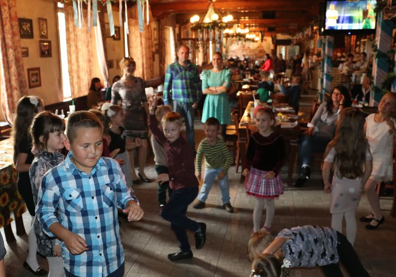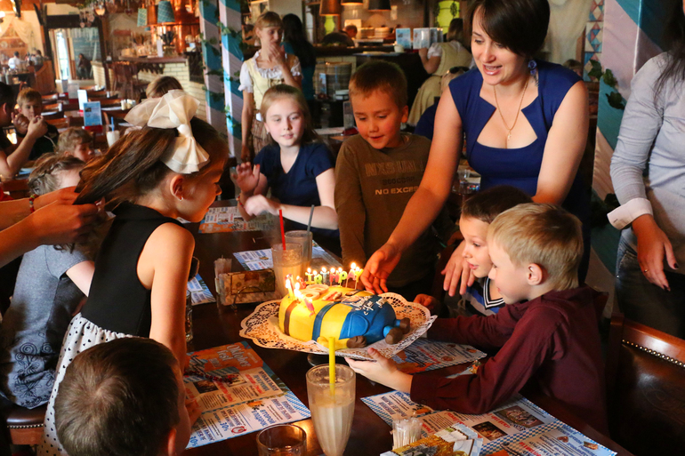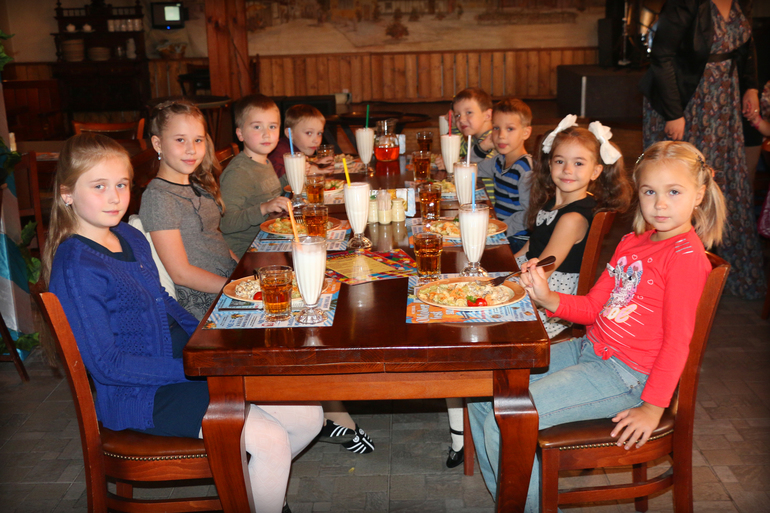 Гости быстро собрались. Было 9 детей, они сидели за отдельным столом.
