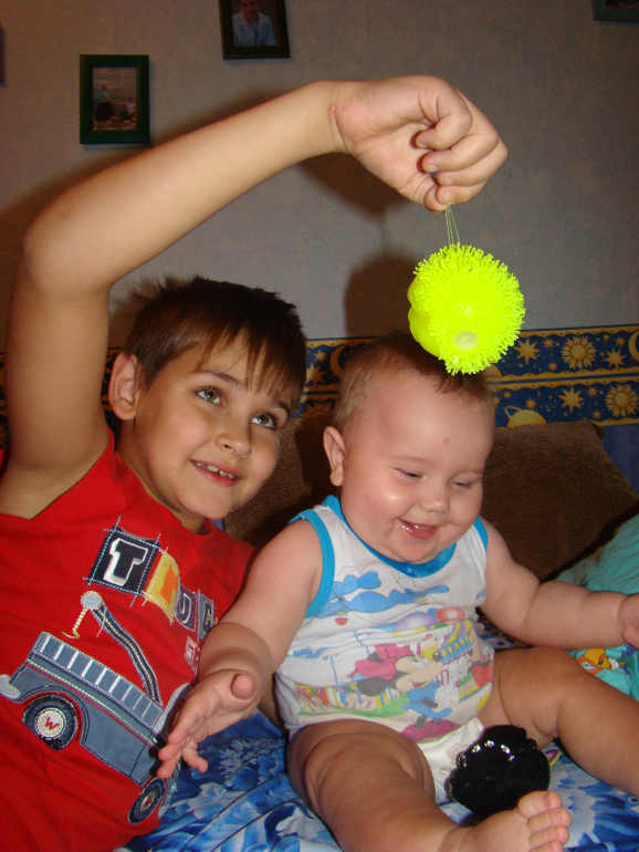 А это уже вечером после гуляния, Васек веселил Макса, Макс хохотал так смешно что я сама смеялась с ними....