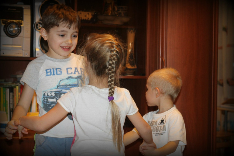 Детки громили квартиру играли, мы мило беседовали и пили зеленый чай на кухне:) Приятно, когда дети дружат с пеленок, женится собираются:):) Целовали в щечки друг друга.