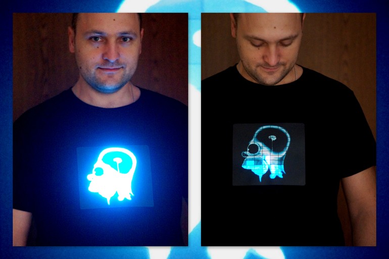 Ну т.е., чем громче музыка (голос, вообще звук), тем ярче светится картинка. И конечно, детей это ужасно прикололо) Папа наш стоически выдержал полчаса, пока дети, как чертята, прыгали вокруг него и громко кричали)