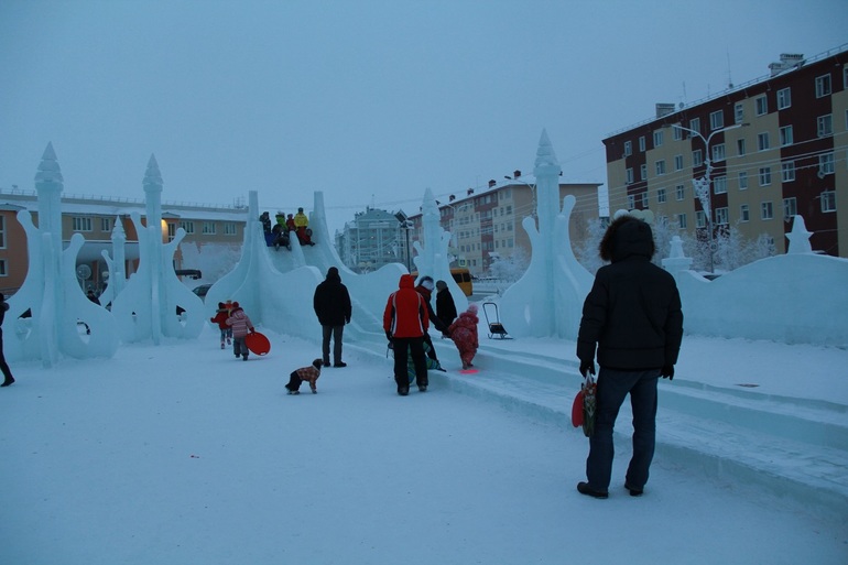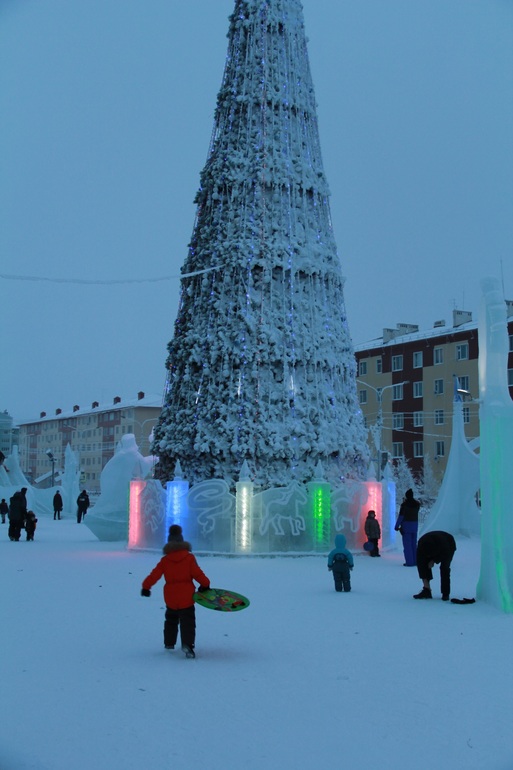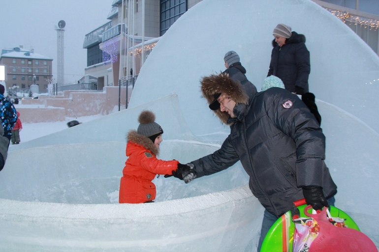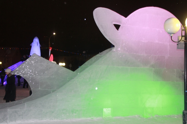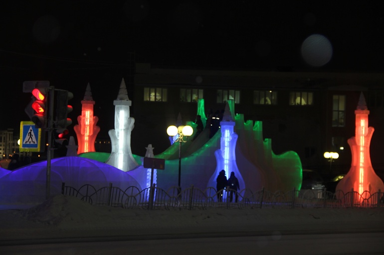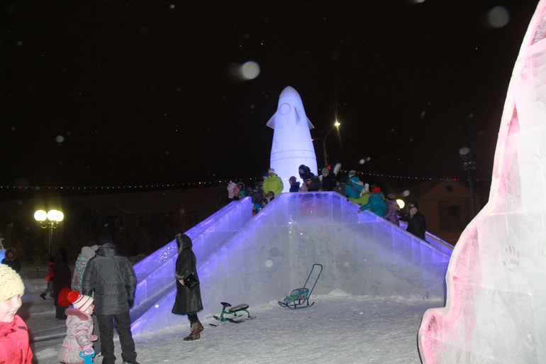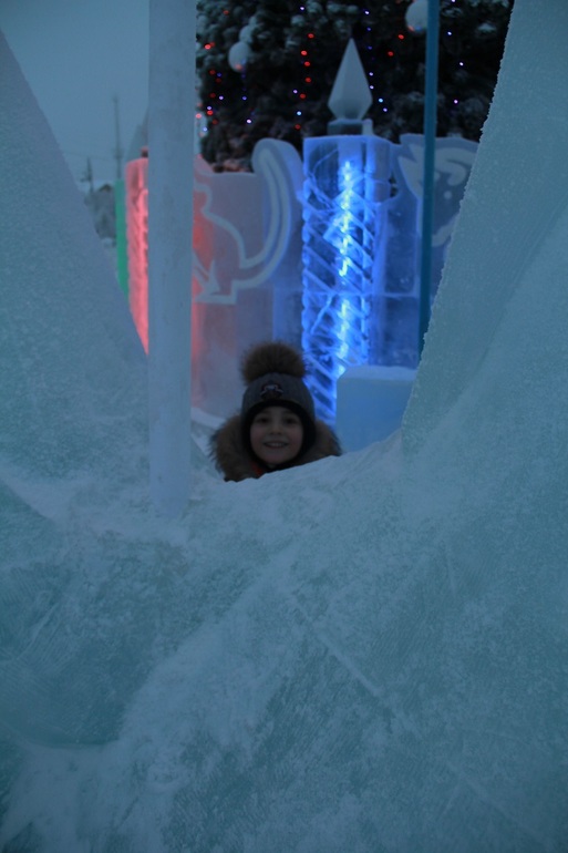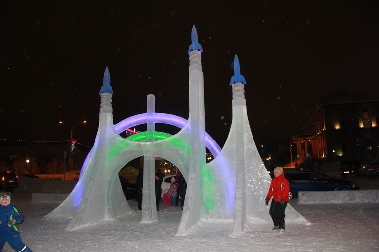 Ледяные фигуры мне сначала не нравились когда их строили,их у нас из окна видно,так что весь процесс был на глазах,но когда все закончили вроде бы красиво! Мне нравится что каждый год неповторимый,в этом году для мальчишек постарались)))