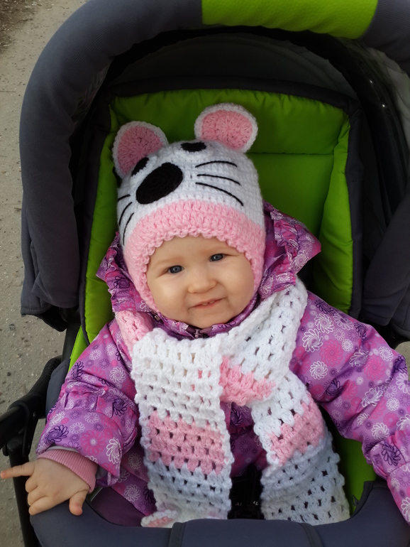 Наши прогулкиОдна знакомая связала доче вот такой комплектик! Я в восторге! Теперь мы окружены постоянным вниманием на улице!