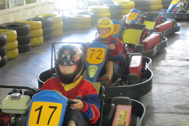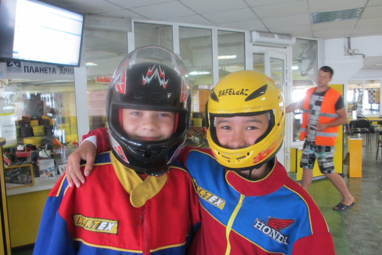 И от мужа поступило предложение сходить на картинг. Взяли с собой близкого друга Дениса, Диму. У них полгода разницы и он сын наших друзей.
