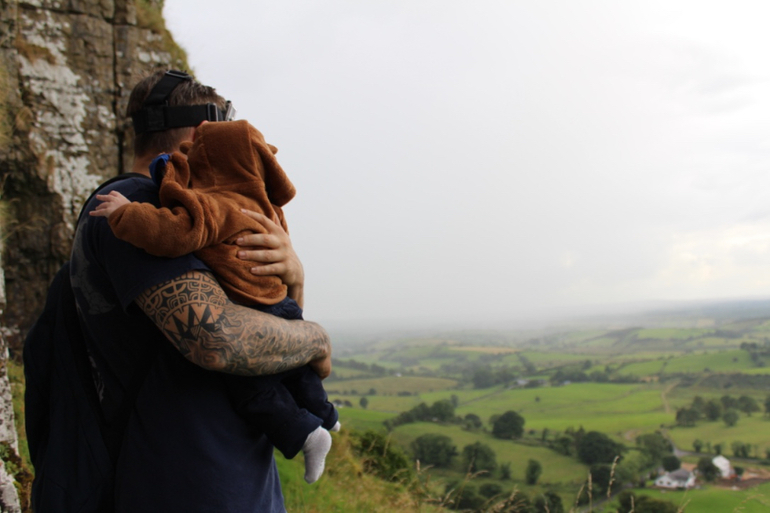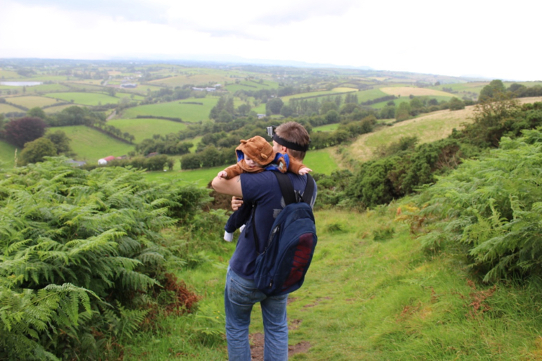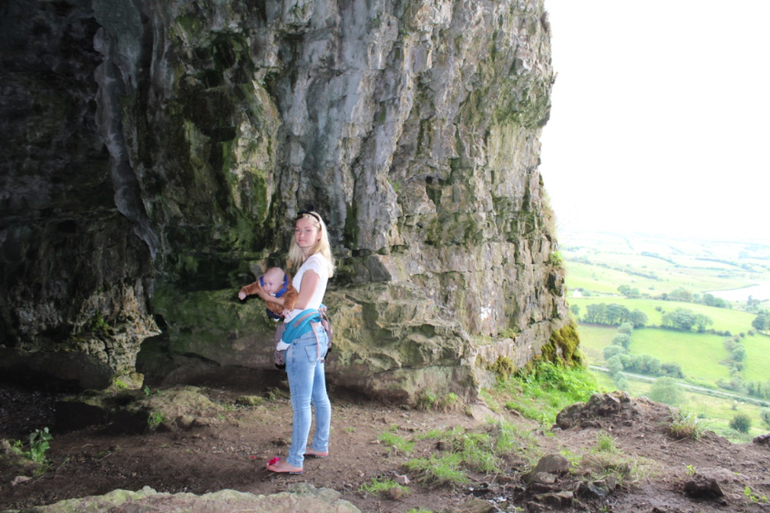 На днях муж не сказав куда он хочет меня отвезти, практически запихнул в машину со словами,что будет очень красиво, но надо ехать пока не стемнело. Ехали,мы,ехали, подъехали к подножью горы и тут мне стало понятно- подъем в гору, мы уже покорили не мало гор в Ирландии,но то было другое,тогда у нас не было малыша, а с ним будет тяжелее. На тот момент я подумала,что хорошо,что рюкзак для Макса у нас был с собой, но на деле мелкий в нем пробыл пол пути наверх и начал психовать,пришлось нести в руках. Муж потом извинялся,что не сказал взять удобную обувь тк в моих шлепках я скользила, пришлось наверх идти босой,а вниз почему-то нормально было в них спускаться.