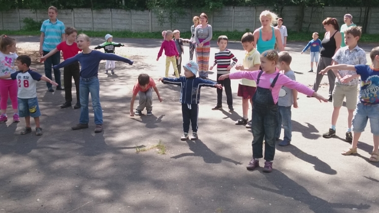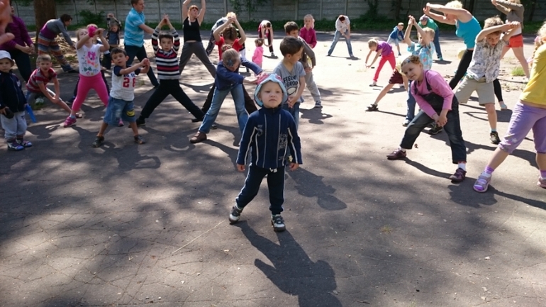 Каждое утро не зависимо от погоды, проходила зарядка. Даже мой жук старался , что то повторял.