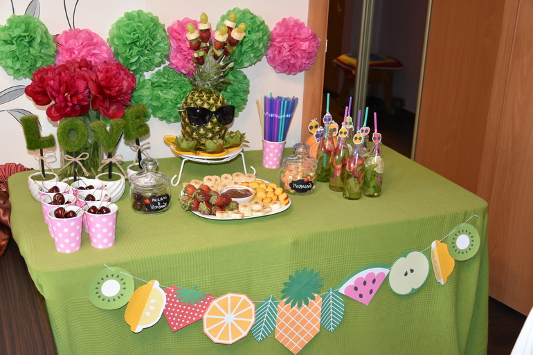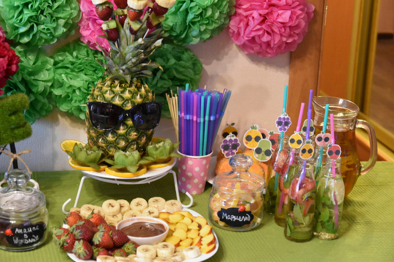 Дни рожденияМой День Рождения в этом году я решила отметить в теме "Фруктово-коктейльная вечеринка". Я выступила в роли бармена, который угощал всех коктейлями, проводил конкурсы и мастер-классы по изготовлению цветов из фруктов и ягод. Немного фото под катом
