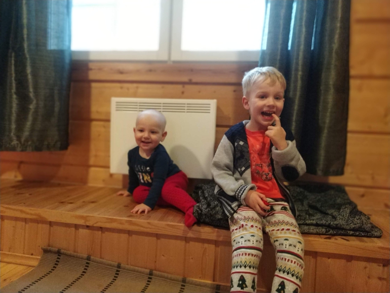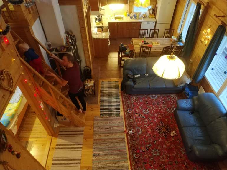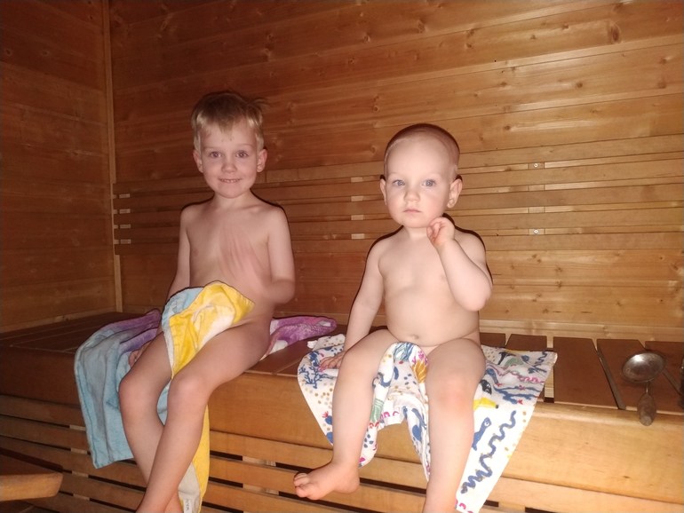 Эх!( Придется как-нибудь повторить, только со снегом. Мы сняли домик на берегу озера, рядом ни души, но и до города, магазинов было не далеко. В домике была лестница моего кошмара, мне даже ночью снилось, что дети падают с нее) Очень порадовала сауна.