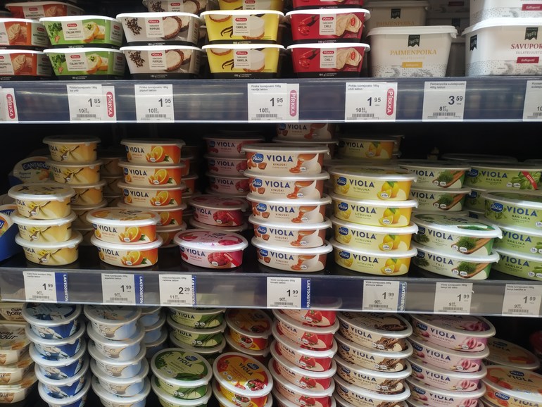 В магазинах люблю выбор твороженного сыра Viola от Валио. Только за ним и рыбой готова снова и снова приезжать в Финляндию.
