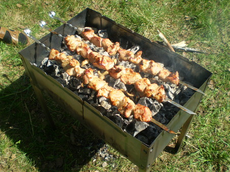 ооо, сосиски были супер!!! Да с кетчупом, майонезом и сливочно-чесночным соусом.После них уже и шашлык-то не хотелось