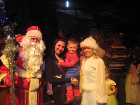 "фоточки наших радостей"На новогоднюю елку мы так и не попали,просто проспали ,она была в 10 утра,зато на эту пришли пораньше, сынуля сразу залез к папе на руки,потом пребрался ко мне,еле его раздели,он огляделся и дал себя преодеть.