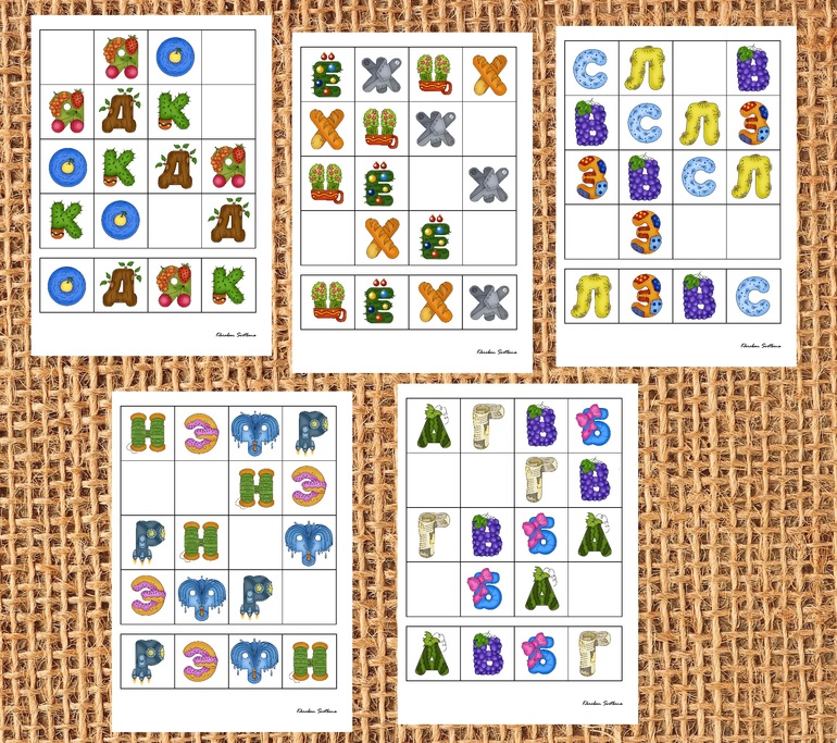 О том, что Цветана очень любит судоку я уже писала. Иногда играем вот так, а иногда предлагаю ей печатный вариант. Сейчас она уже сама без моего участия верно раскладывает все недостающие изображения в пустые клетки. Вижу, что дочь получает удовольствие от того, что легко справляется с выполнением заданий. Максимальное количество клеток у нас всё ещё пока 4х4, но, думаю, что можно уже увеличить поле до 5х5.