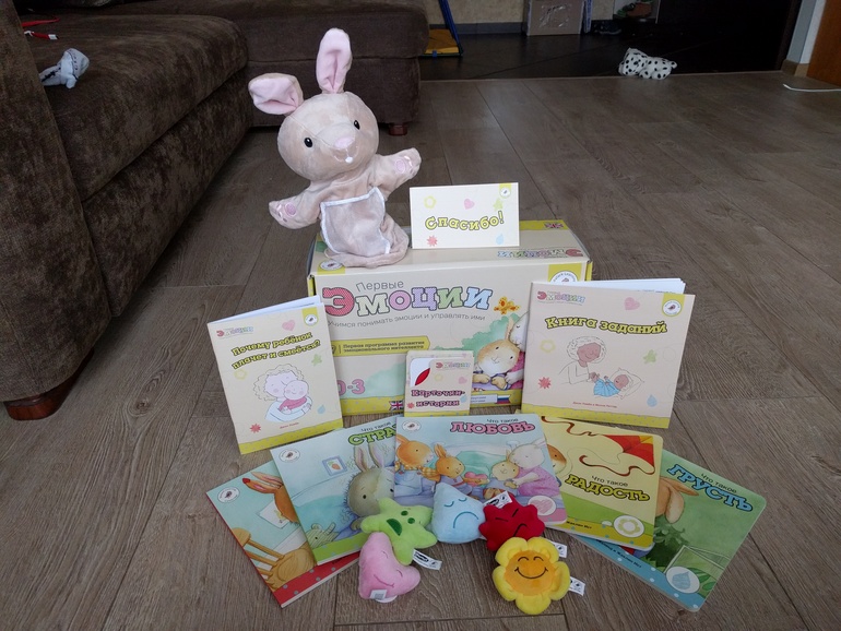 Вчера поехала в Умницу, для подруги затариться) Не планировала ничего покупать. В итоге не удержалась, взяла новый комплект "Эмоции" Такой он прям карамельный) Для развития эмоционального интеллекта) Как психолог, считаю, что эмоциональный интеллект иногда важнее, чем интеллект(IQ) Ну как все мамы делают, если ребёнок плачет, расстроен, надо объяснить ему его же эмоции. Если папа вдруг прикрикнул, надо объяснить, что папа устал, он зол, но все равно тебя любит) Это и есть развитие эмоционального интеллекта. Что бы ребёнок мог понять эмоции других людей, свои эмоции, а потом и научился ими управлять) Как это часто бывает, у человека может не быть красного диплома, но он потрясающий руководитель, понимающий, выслушает каждого сотрудника, войдёт в положение. А есть такие начальники, которых ни во что не ставят, за спиной шушукаются, просто он не умеет найти общий язык, не знает, как найти подход к коллективу, хотя у него опыт, талант, образование. В наборе Зайка-лапочка), который нам сегодня помог не плакать и успокоиться, он объяснил, что Мирославу грустно, и его надо развеселить. Зайка почитал нам книжку про грусть, поцеловал в носик и ушёл спать) Более крутого метода, объяснить ребёнку, что он чувствует, я не встречала. До этого просто сама рассказывала. Но, как известно, дети развиваются в игре)