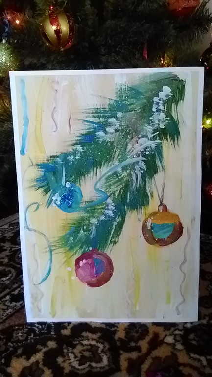 Сначала совсем малышковые рисунки. Это мы делали открытки к новому году бабушкам