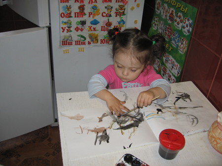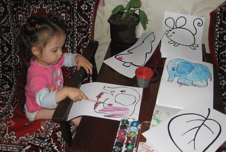 Скачал с инета много разных трафаретов для разукрашивания. Нам с дочкой так понравилось что наверно больше часа просидели. Лишний раз цвета поучили, разыгрывали разные сценки с уже разукрашиними животными. Да и вообще очень полезное это дело развивает аккуратность, внимательность, фантазию...