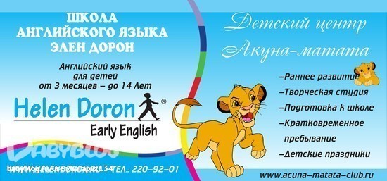 Курсы английского языка Helen Doron Early English предназначены для детей с 1года до 17лет. С 1985 года метод Helen Doron Early English позволяет приобщаться к языку Шекспира тем же способом, что и при изучении родного языка – легко и непринужденно. Инновационный метод Система обучения Helen Doron Early English – это чувствительный и проницательный подход, приносящий удовольствие и огромную отдачу от обучения. Он готовит мозг к изучению, стимулируя интеллектуальные способности играми, песнями, музыкой… Работа по педагогическим материалам Helen Doron Early English приносит удовольствие от получения новых знаний и стимулирует мотивацию в каждом возрасте. Преподаватели по методике Helen Doron Early English прошли специальное обучение и умеют создавать непринужденную, мотивирующую атмосферу обучения. Живая и игровая обстановка поддерживается благодаря регулярности занятий и постоянной смене педагогических материалов в процессе обучения. Дети распределяются в группы по возрасту. Мы открываем новые группы в течение всего года в зависимости от Ваших пожеланий. Международная школа Helen Doron. Москва.СЗАО.м.Сходненская. ул.Сходненская д.25 (в торговом центре) тел:8-495 220-92-01