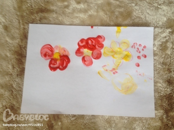 Развитие детей второго года жизнивот наши работы!моя доченька рисует цветочки сама,лучики солнышку и разные рисуночки пальч.красками.Подскажите,а что рисуют ваши малыши в 1,8?