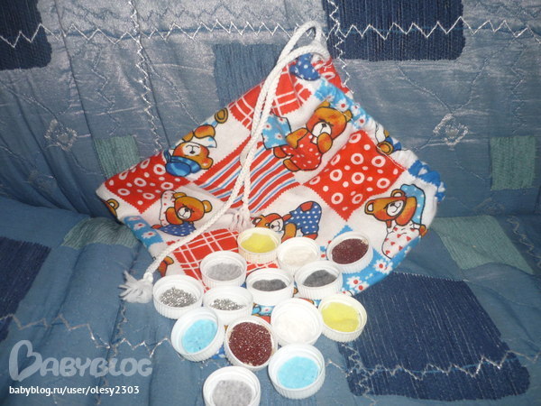 Все о развивающих игрушках, пособиях и книгах (обзоры, рекомендации,хвастики, ссылки)Вчера сшила вот такие мешочки и почти доделала наши сенсорные крышечки