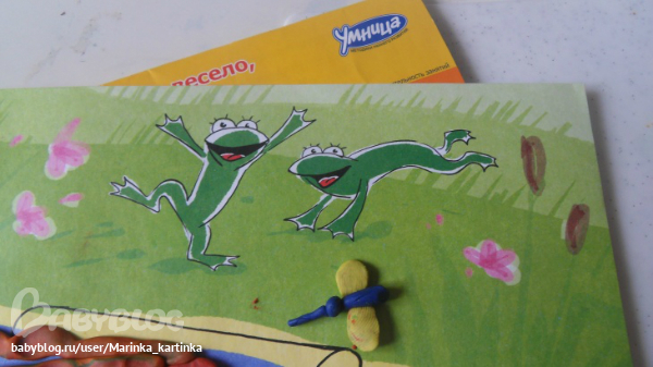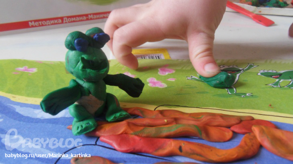 Оказалось, что у нас нет игрушек-лягушек. Пришлось мне слепить это чудовище)))