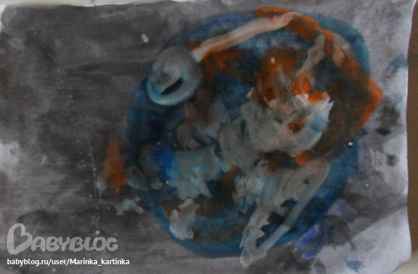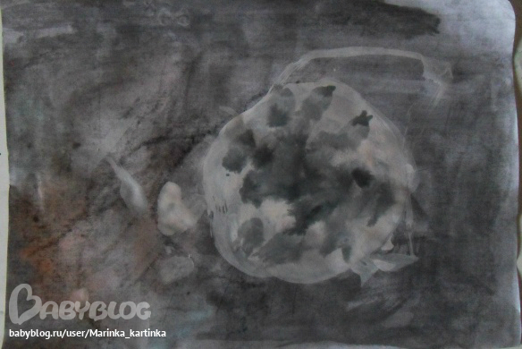 Это дочурка рисует сама по карточкам . Обычно используем гуашь, а тут начали акварелью, а потом все таки подключили гуашь. Рисует сама, я иногда акцентирую внимание на картинке и делаю подсказки по расположению. Полностью закрасить лист черным тоже терпения не хватает, делаем вместе)))