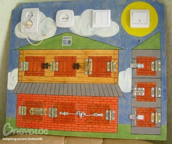 Разное (если затрудняетесь с выбором)Доска с замочками - спасибо нашему папуле за неё, пока интересуют только выключатели и розетки, но ,думаю, в скором времени и остальное будет интересно!