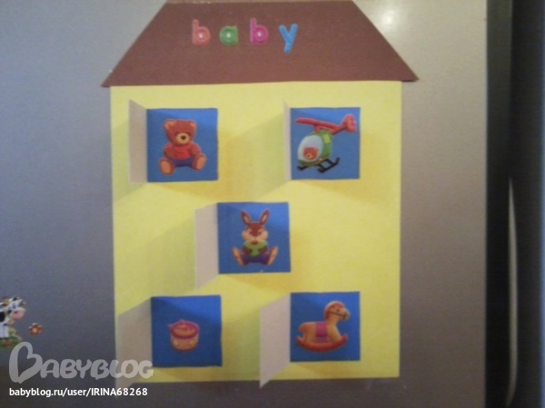 сейчас мы вот такой домик сделали -уже выучили где кто живет... потом буквы и цифры хочу в окошки поместить вместо игрушек.