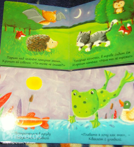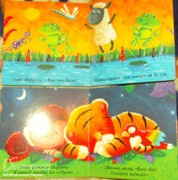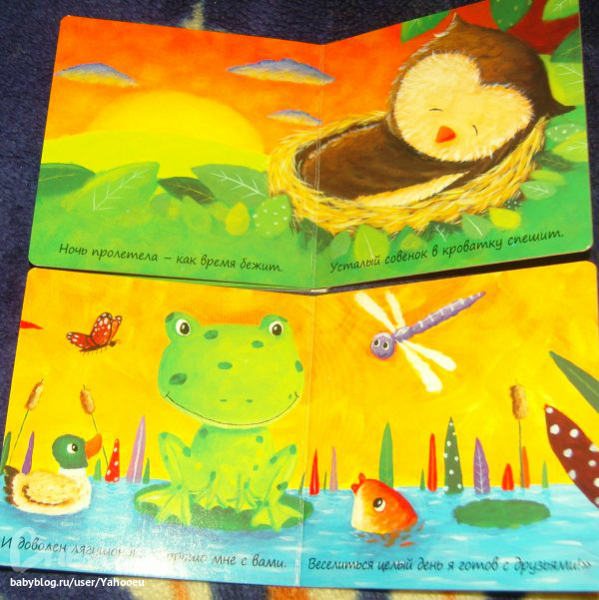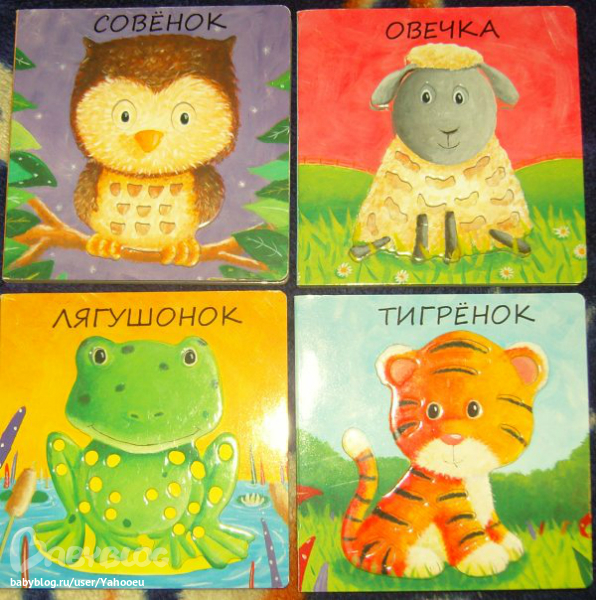 Книги небольшого формата, выполнены из плотного картона с объемной вырубкой животного на главной странице, цвета очень сочные,яркие - нам очень понравились, мне лично больше всего понравилось про сову и тигренка)