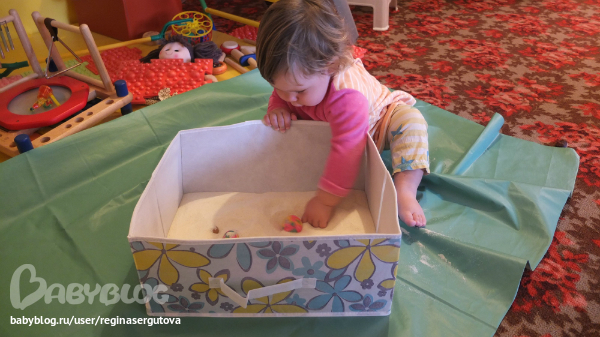 Развитие детей второго года жизниВдохновившись постом Ольги http://www.babyblog.ru/user/olgamarus/3017986 собиралась сделать дочке сенсорную коробку с манкой. Точнее, уже даже сделала: отрезала низкую картонную коробку, обклеила скотчем. Получилось не очень красиво. но на безрыбье... подумала тогда я=) Оставалось только купить манку и засыпать. И вот сегодня случайно в увидела вот такую коробку... "Для манки!", конечно же подумала я=) Всего за 37 р.!