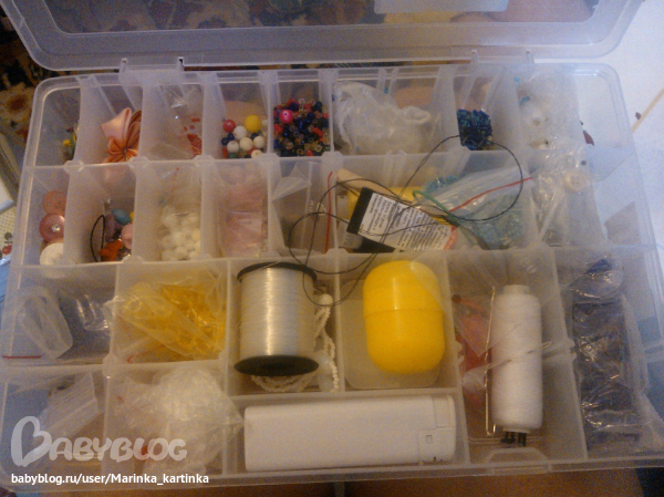 И достала еще одну коробочку с бусинами, бисером и прочими украшательствами. чт мы и пустили в ход.