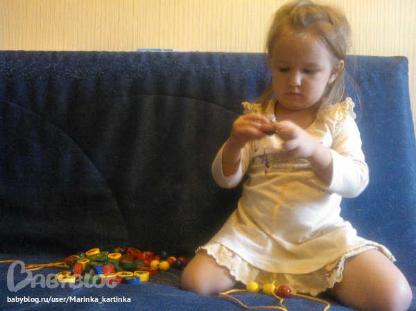 Потом достали свои позабытые деревянные бусы ибирали их для кукол)