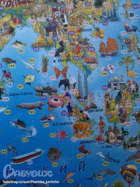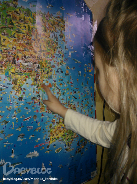 Утро начинается с похода к карте, потом ребенка просто не оторвать! Она все время спрашивает что это, кто это, как называется... Куча вопросов!
