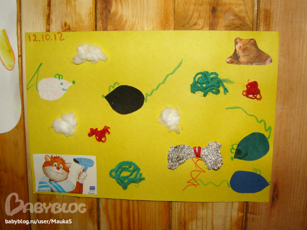 Кошачья неделька: Аппликация – кошкины игрушки.