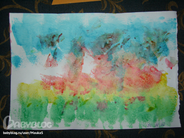 Вот наша работа - родители сказали что это "Пожар в лесу" - ну а мы рисовали "Цветочную полянку"
