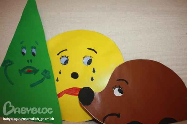 Сначала Ёлочка, Солнышко и Ёжик плакали и расстраивались: